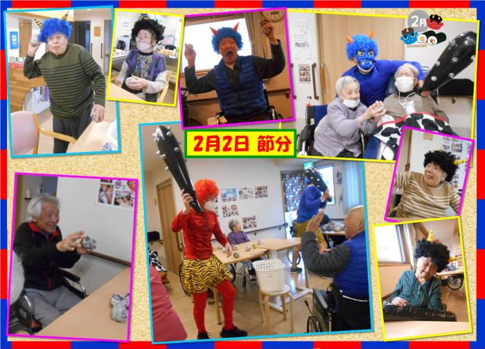 2月2日に節分行事を行いました。『鬼は~外!』の掛け声に合わせて鬼を追い払い、無病息災を祈願しました。