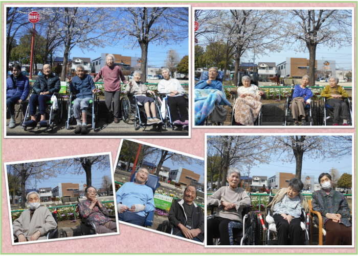 お向かいの公園で桜を観覧しました。施設の目の前にあるので、建物の中からも見ることもできますが、外の空気を吸うとやっぱり良い気分転換になりますね。