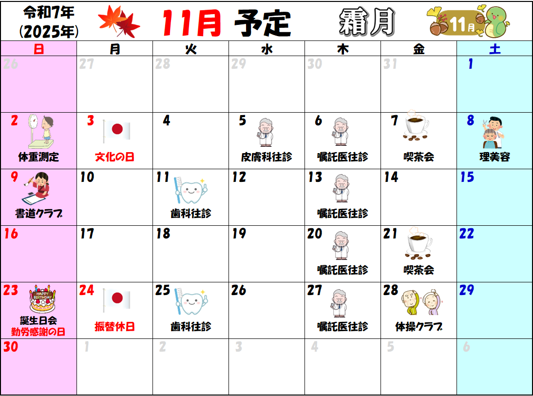 比良清里苑 11月の予定