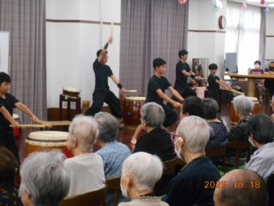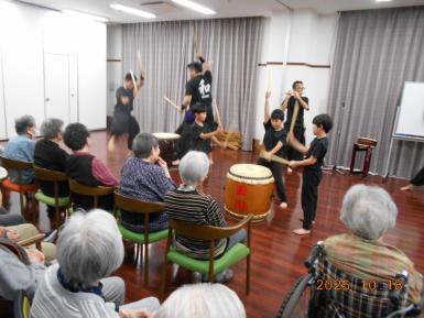 本日玉川太鼓倶楽部 和(なごみ)の皆様が久しぶりに木場清里苑に和太鼓の演奏に来て下さいました。
