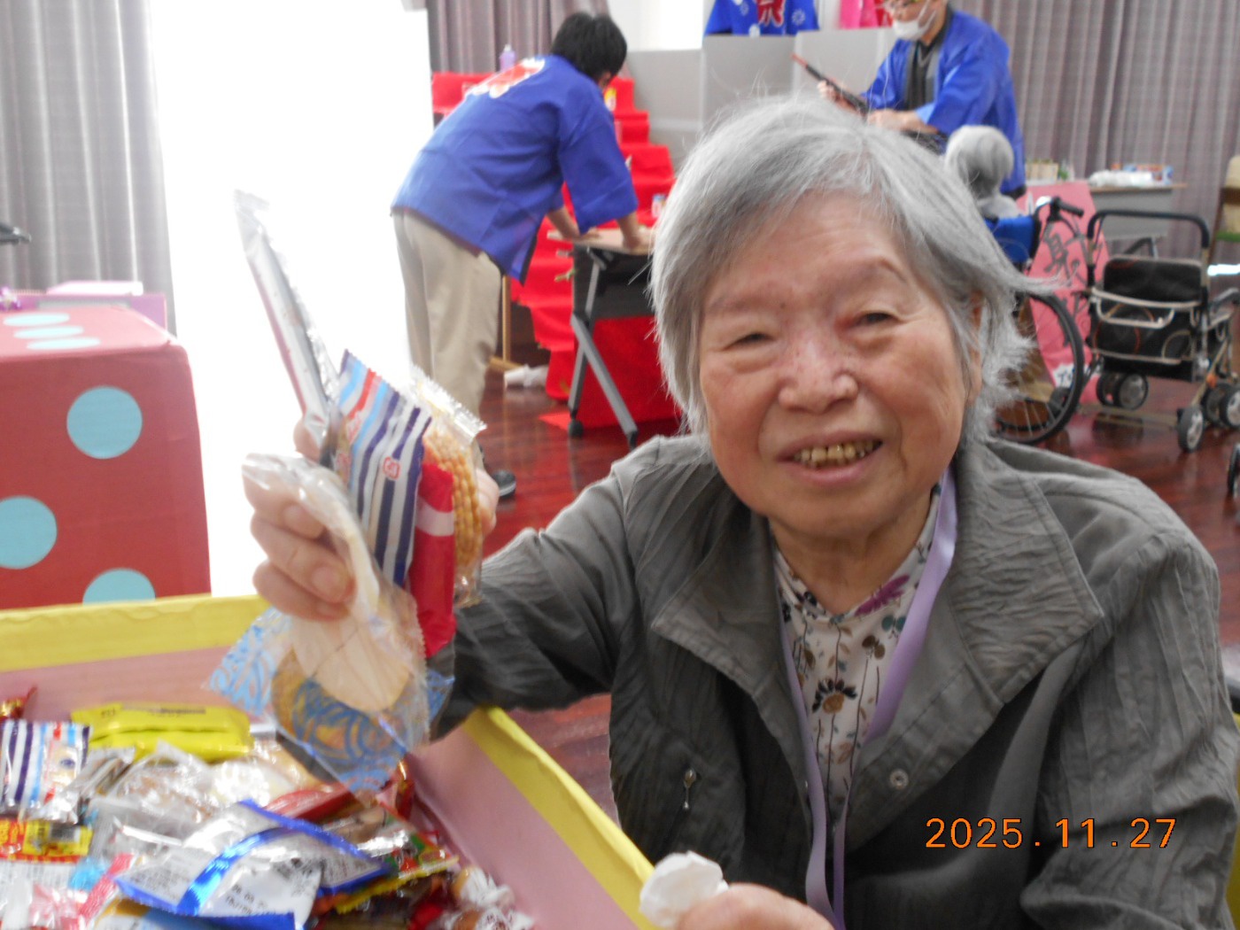 また、入居者様から「私たちの為に色々と用意して下さってありがとうございます」と労いの言葉をかけて頂いて、入居者様も職員も笑顔になり、素敵な秋祭りとなりました。