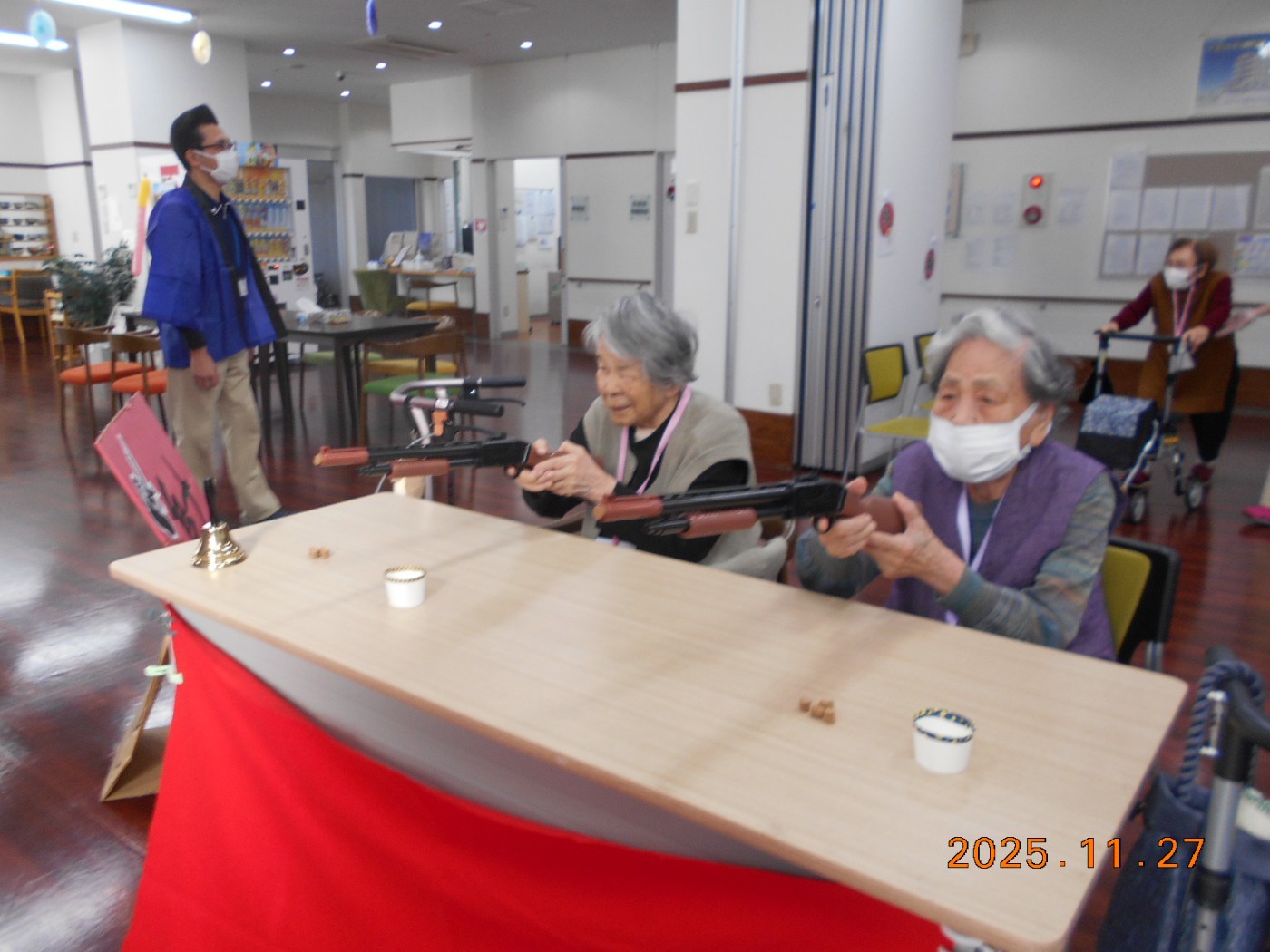 射的では「なかなか難しいね」と苦戦されていましたが、的を倒すと「やった!」と喜ばれていました。