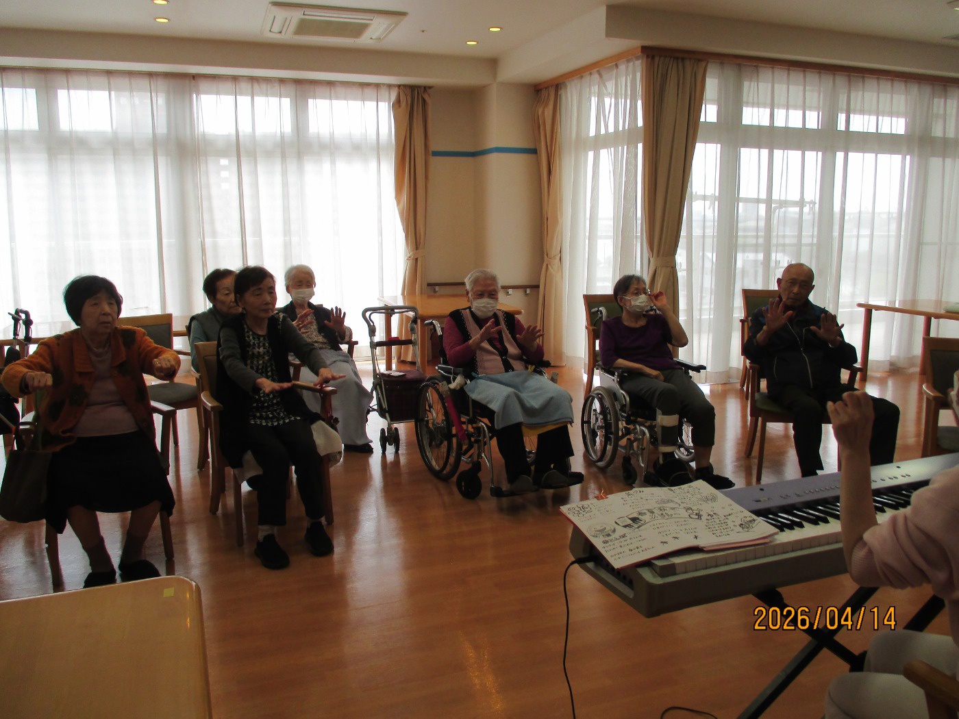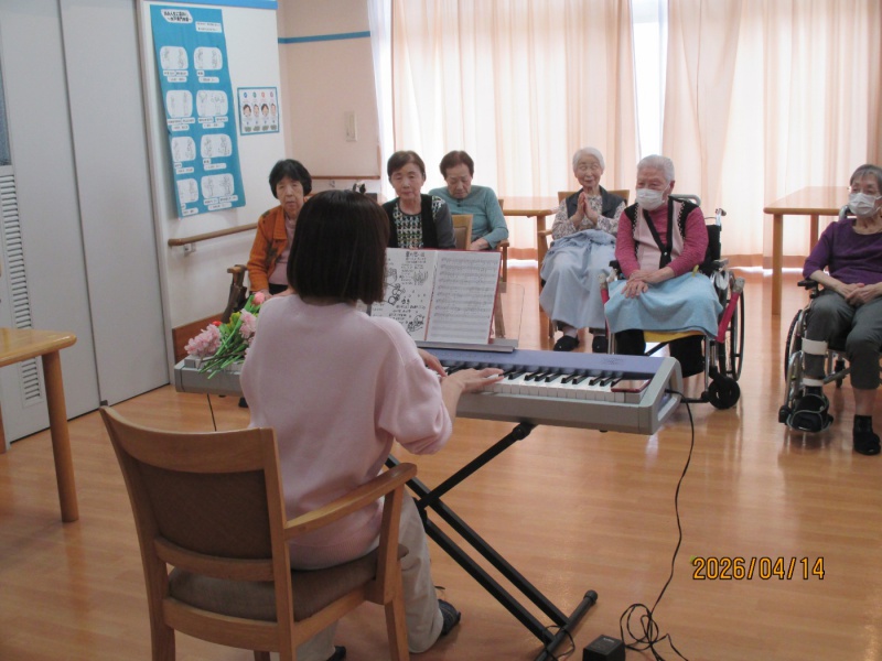 音楽ボランティアの方による演奏が行われました。事前にあることをみなさんに伝えると「どんな方が来るの?何時から?」と興味津々な様子で聞いてこられました。