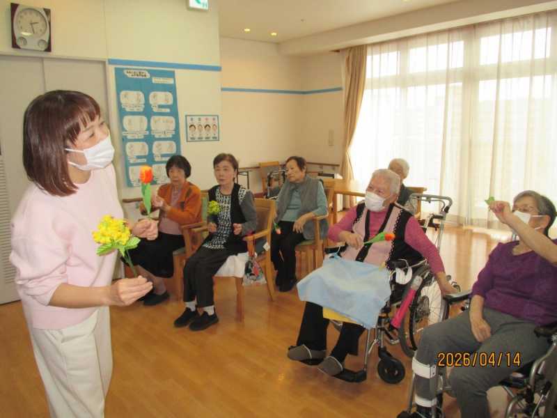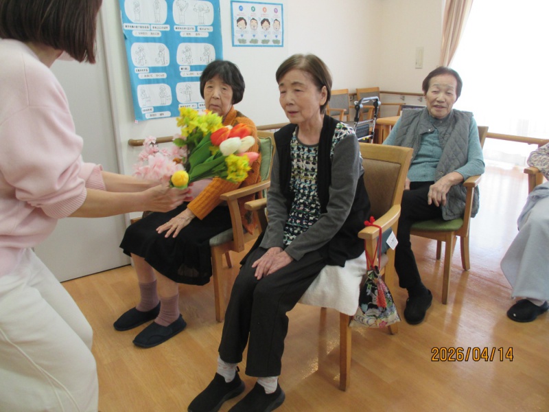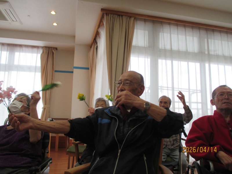 また途中で花を1本ずつ選んで持ってもらい左右に振りながら歌っていました。