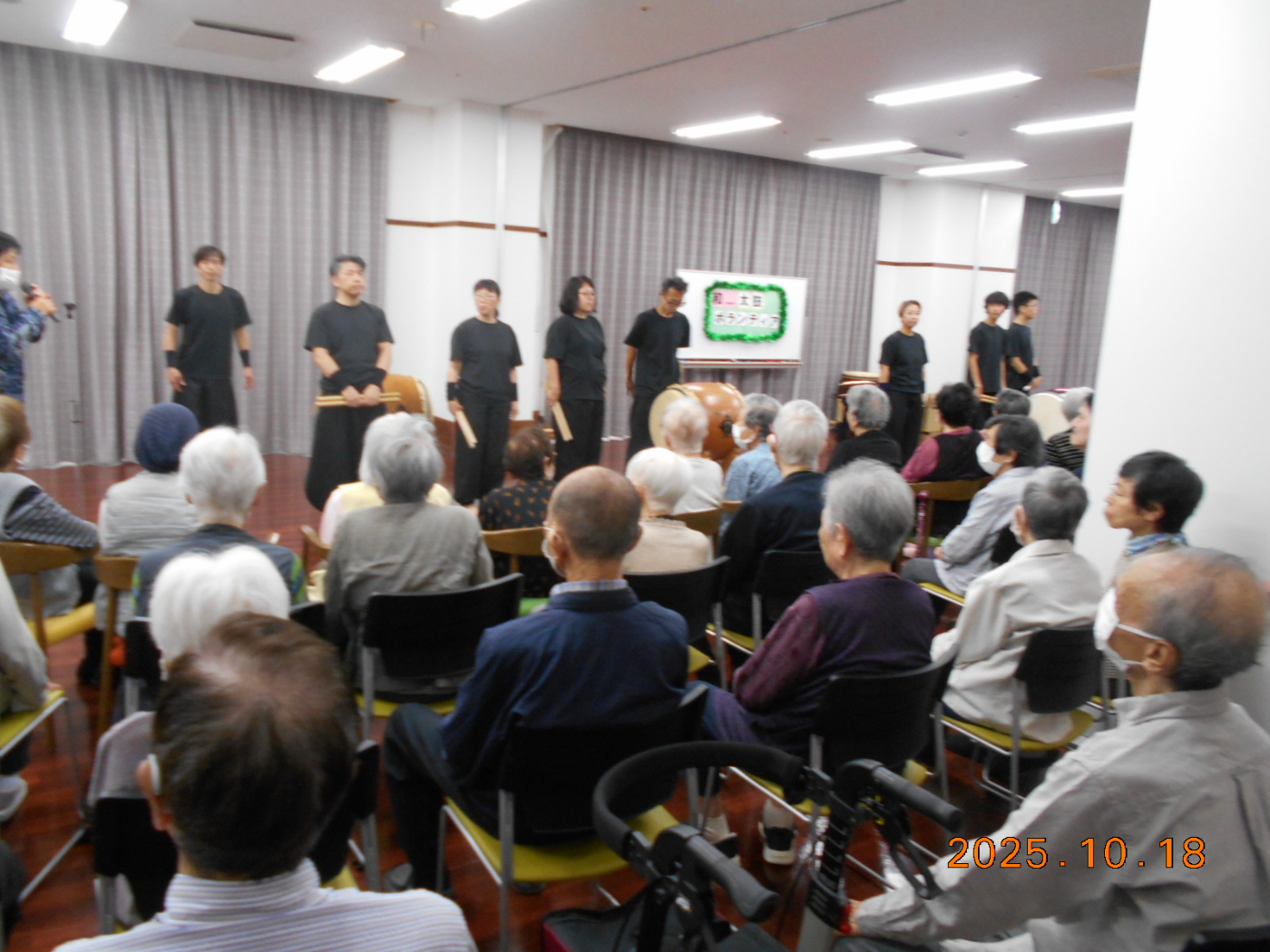 本日玉川太鼓倶楽部 和(なごみ)の皆様が久しぶりに木場清里苑に和太鼓の演奏に来て下さいました。