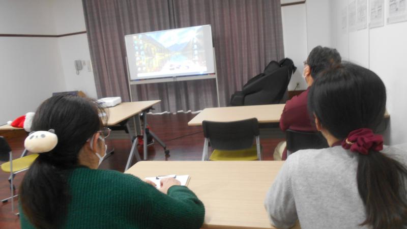 夜間を想定とした避難訓練をしました。 消防署が制作した映像で勉強したあとに、今回は3階の洗濯場からの火災を設定し、火災を発見してから避難誘導までの職員の行動を質問形式で話し合いました。