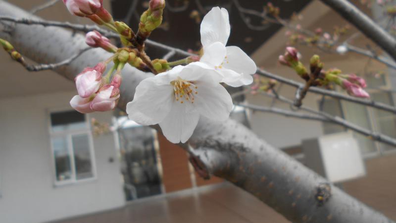 本日、施設長より木場清里苑の桜の開花が発表されました。