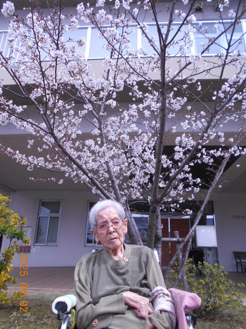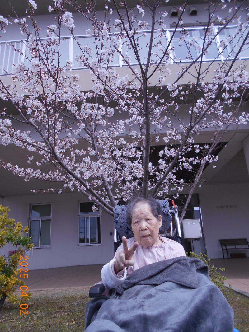 桜の前で写真撮影後、感想を聞くと「きれいだったよ」と嬉しい一言を頂けました! 来年も職員と一緒に観に行きましょう。