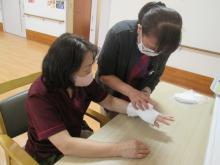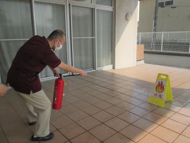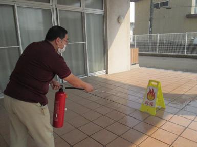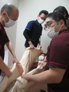 地震による津波を想定した訓練を下記のプログラムで行いました。 ・1階から2階への避難誘導 ・入居者・職員の安否確認及び負傷者の処置 ・火災や建物内外の状況確認 ・情報収集・伝達 ・必要物品の運搬 ・消火器の取り扱い
