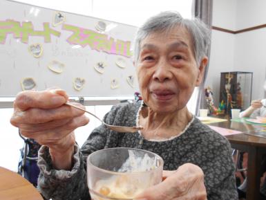 クレープ、ケーキ、プチシュー、アイス、パフェ等を紅茶と一緒に食べられました。 普段あまり食べられない方も「おいしい」と、たくさん食べていました。 「これは別腹」「とても贅沢」「幸せ」と喜びの声があり終始笑顔が見られました。