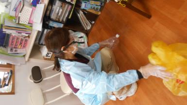 実技講習は手洗いと嘔吐した際の処理方法をやりました。 これからも各職員、感染対策をしっかりと覚え、感染症を広げないようにしていきます。