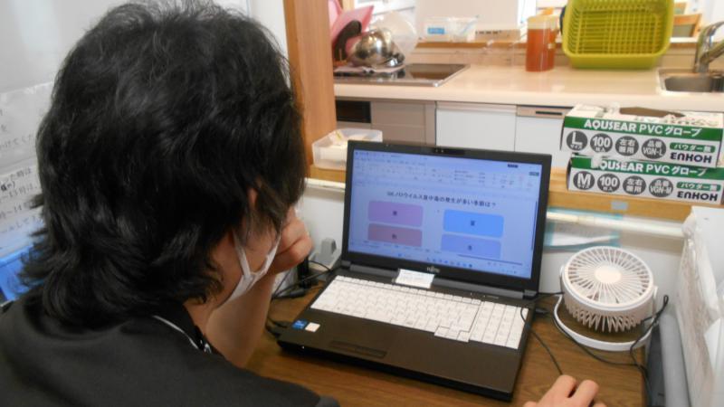 本日は感染対策委員会勉強会を行いました。 今回の感染対策委員会の勉強会の内容は手洗いと食中毒を行いました。 座学講習は手洗いと食中毒のクイズをやってもらいました。