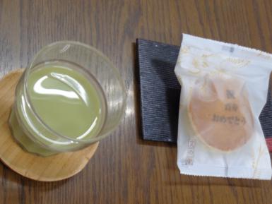 お祝いとして、お祝いのメッセージが入った文字どらやきと抹茶オレをご用意しました。 どちらも美味しそうに食べられていました。