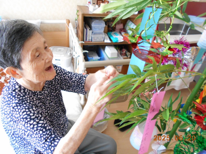 合唱の際は、目をしっかり開けて大きな声で歌ったり、「今日はいい日だったよ」「ありがとう」「またお願いします」と話してくれる方もいました。素敵な七夕の日になりました。