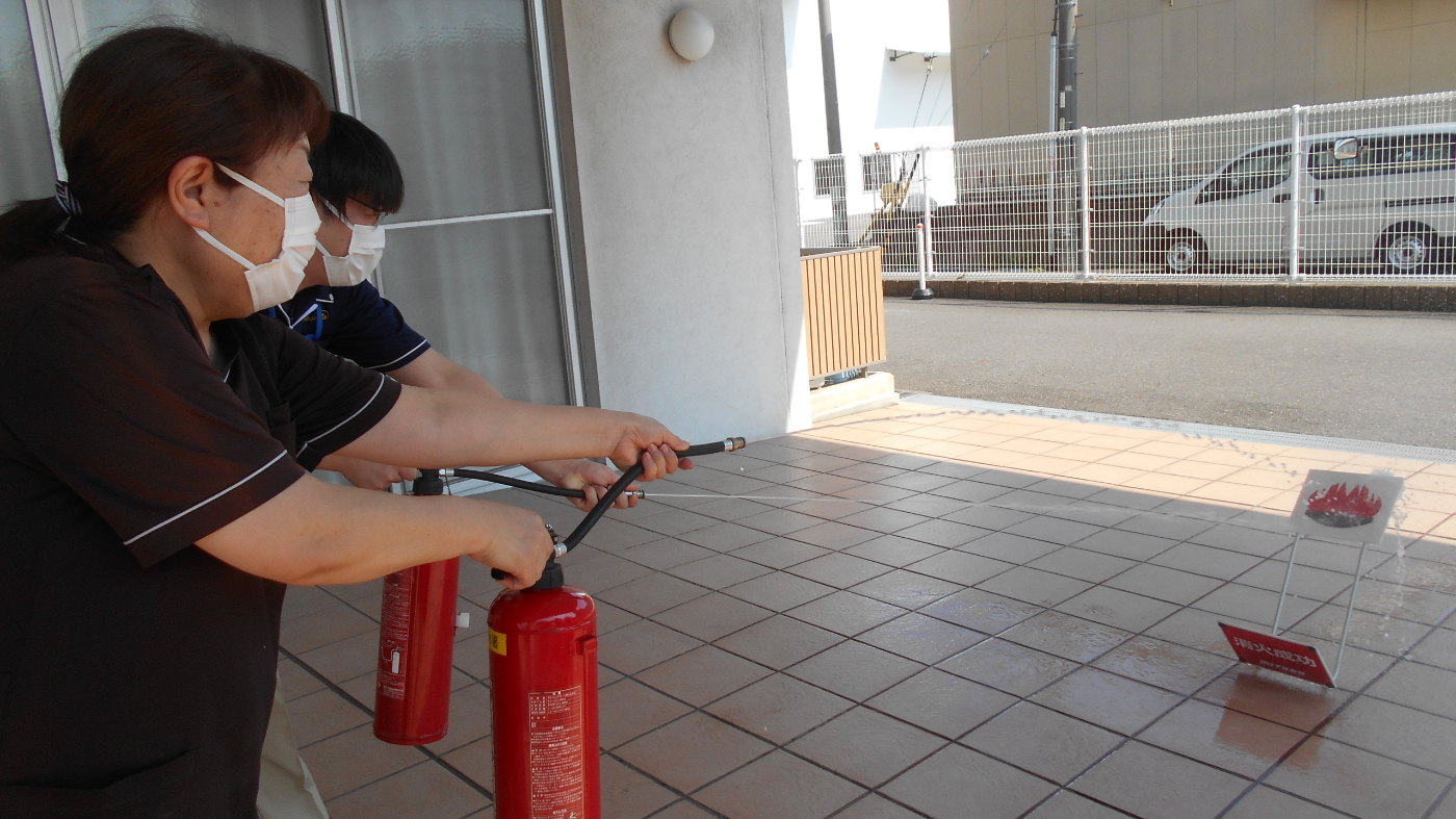 訓練の最後に訓練用の消火器を使用し消火訓練を行いました。