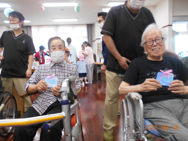 園児のみなさんから心のこもったプレゼントをもらって『はい、チーズ!』