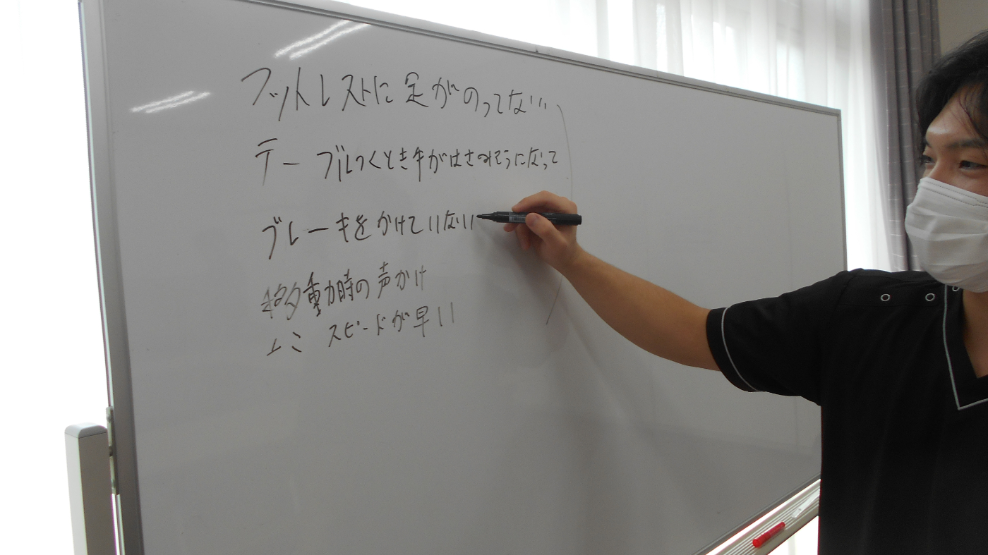 本日の勉強会のテーマは「車椅子移動介助時の危険予知」です。