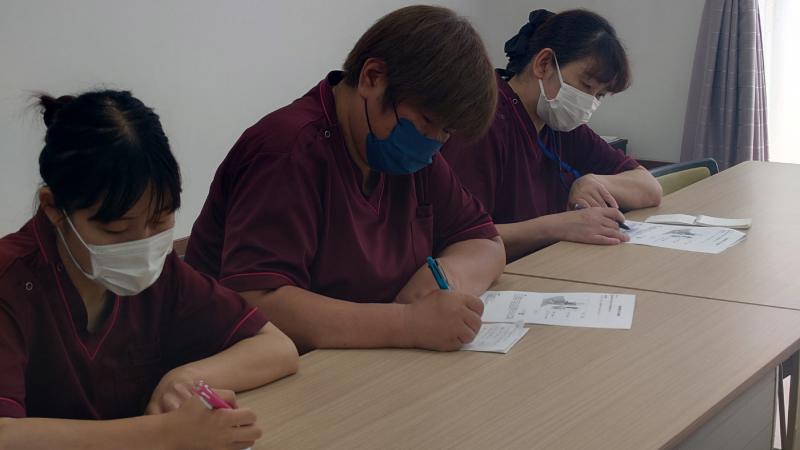 参加した職員は介護経験が長く、視野が広いおかげでホワイトボードには書ききれない程の危険予知が出てきました!