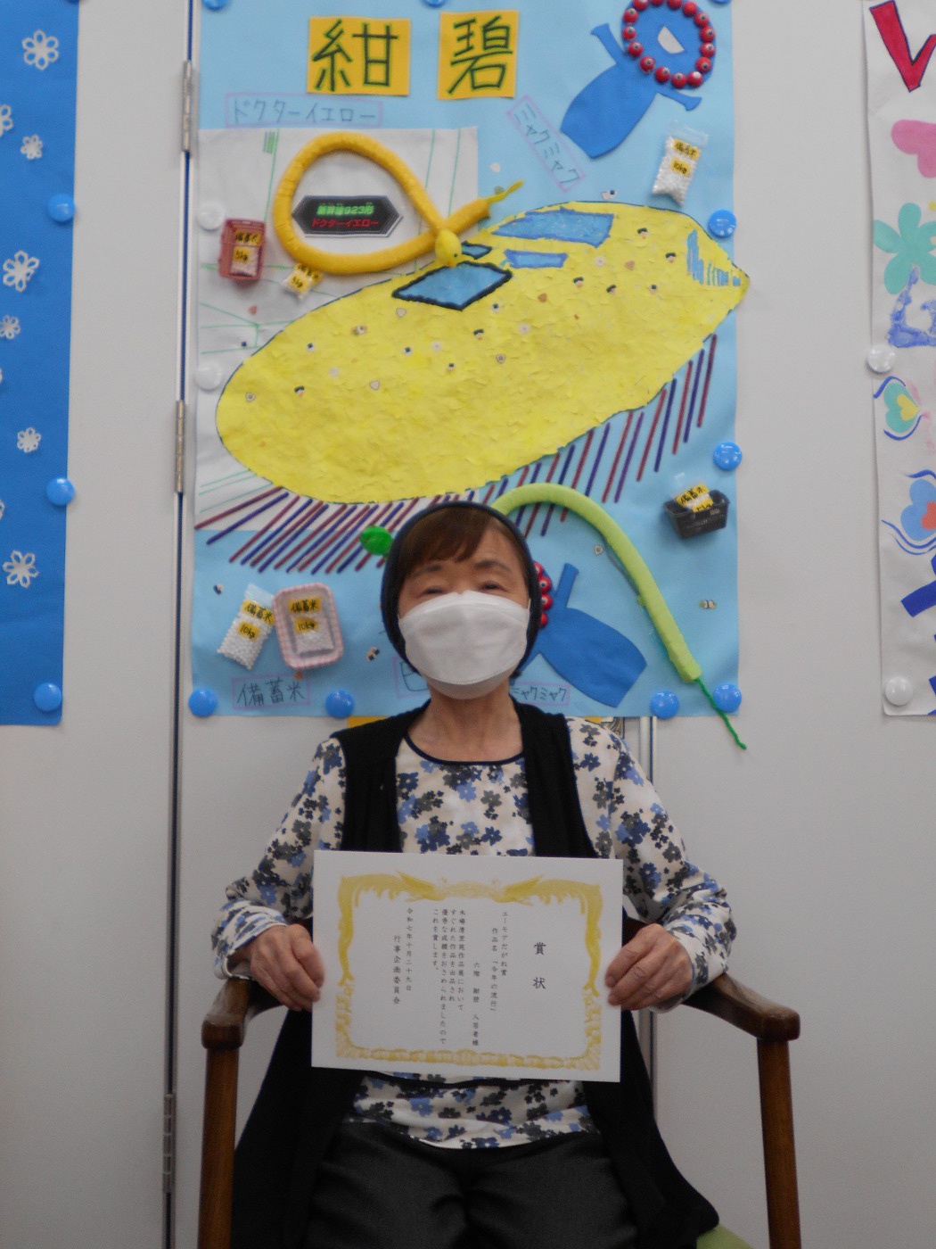 展示した「今年の流行」がユーモアだがね賞を受賞しました。「ありがとうね」と言いながらも「来年はトロフィーが欲しい」と来年への意欲を見せていました。
