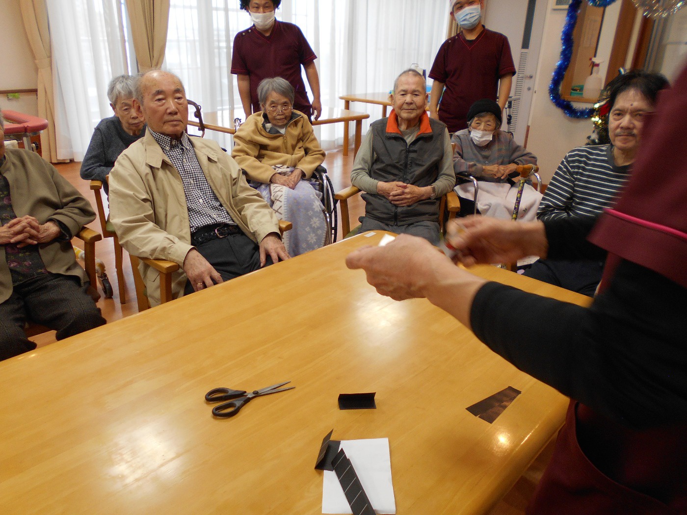 また「ありがとう。またやってね。楽しかったー」と声掛けして頂いたので職員も笑顔になり、素敵なクリスマス会になりました。