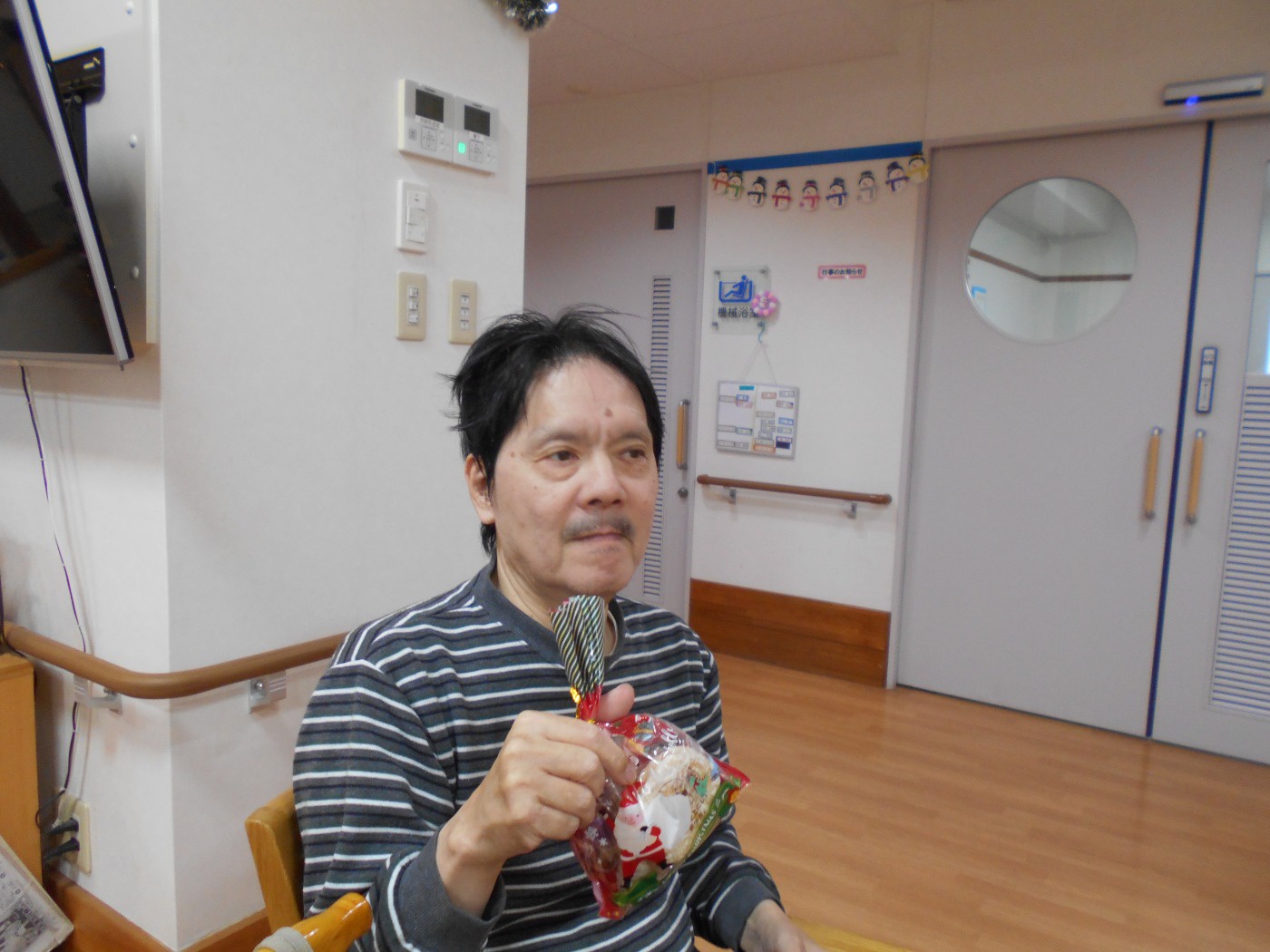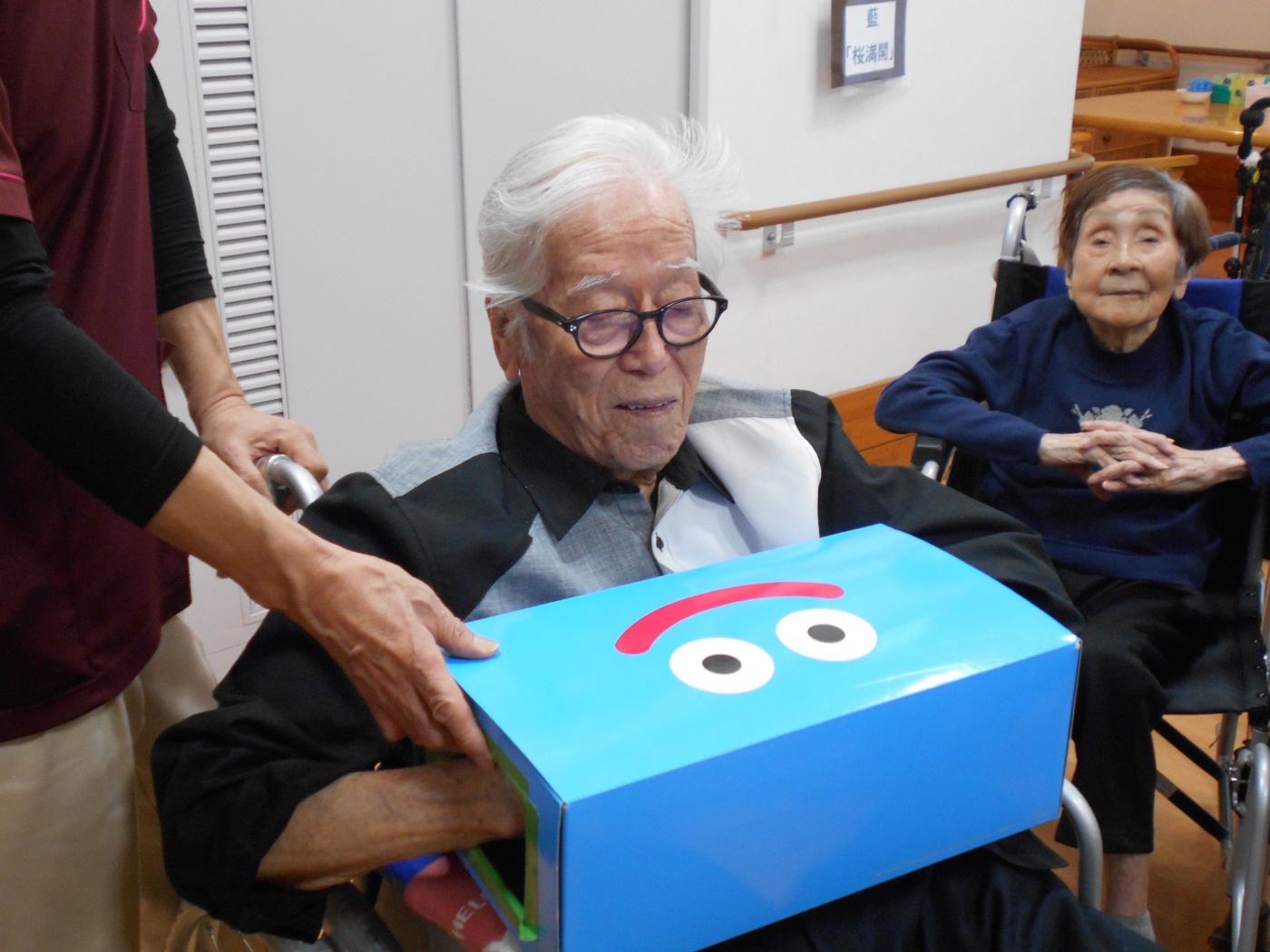 またケーキやジュースを召し上がってプレゼントのお菓子も食べようとされ「あとで食べてね」と職員の方から言われて笑ってごまかしている方もいました。