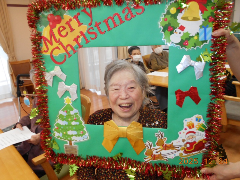 クリスマスソングは職員が中心に歌って、だんだん入居者様も一緒に歌い大合唱になっていました。
