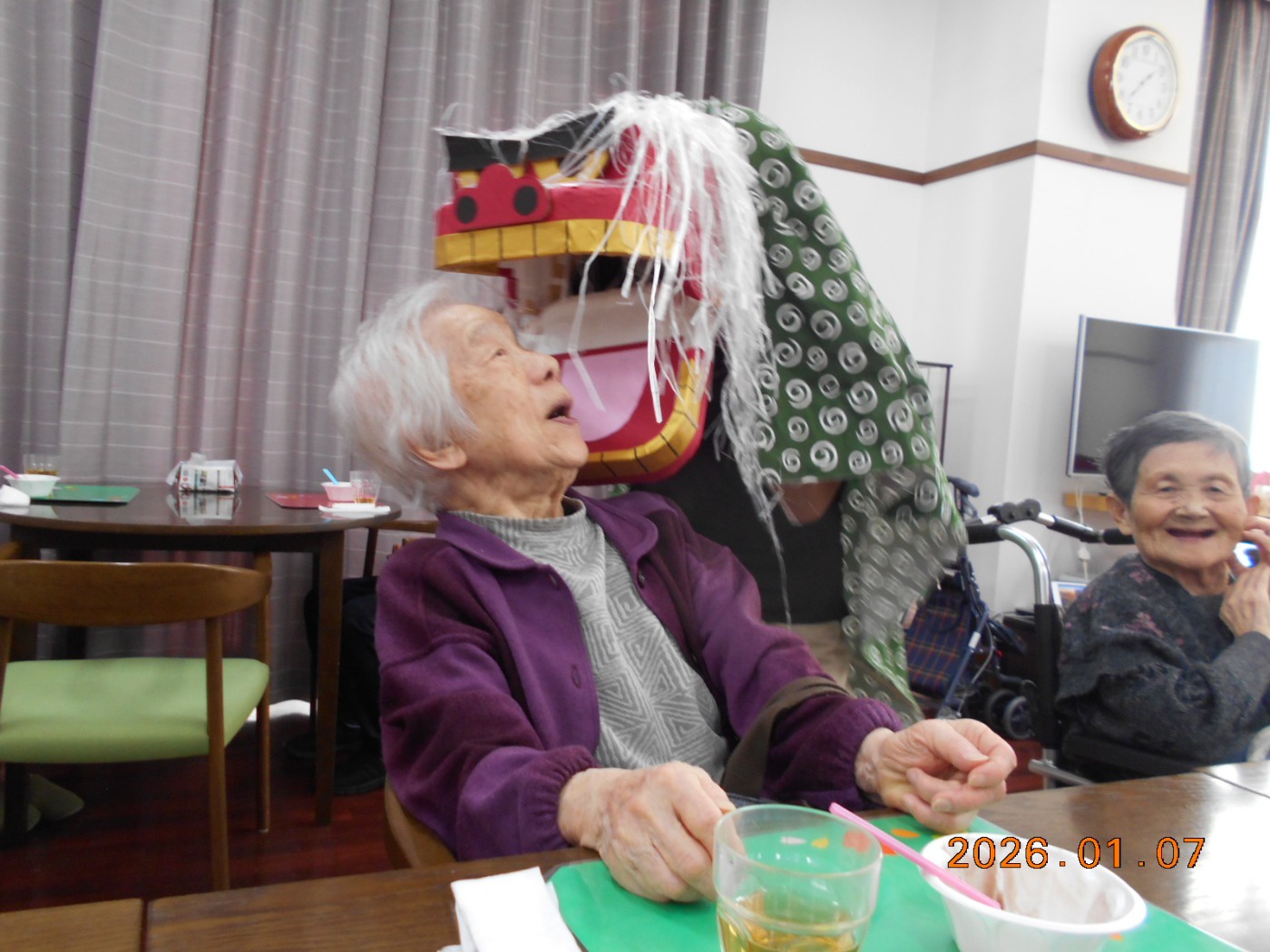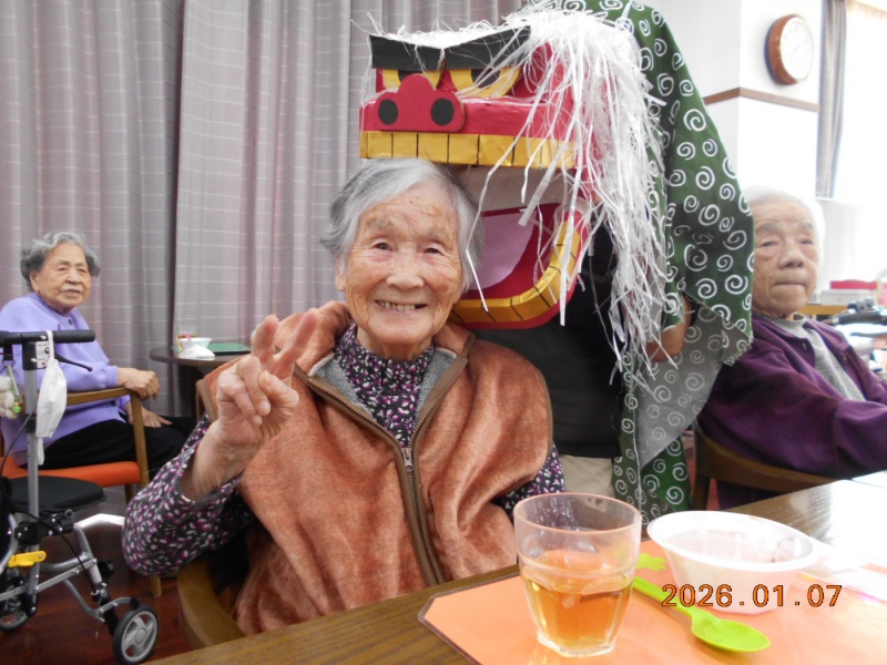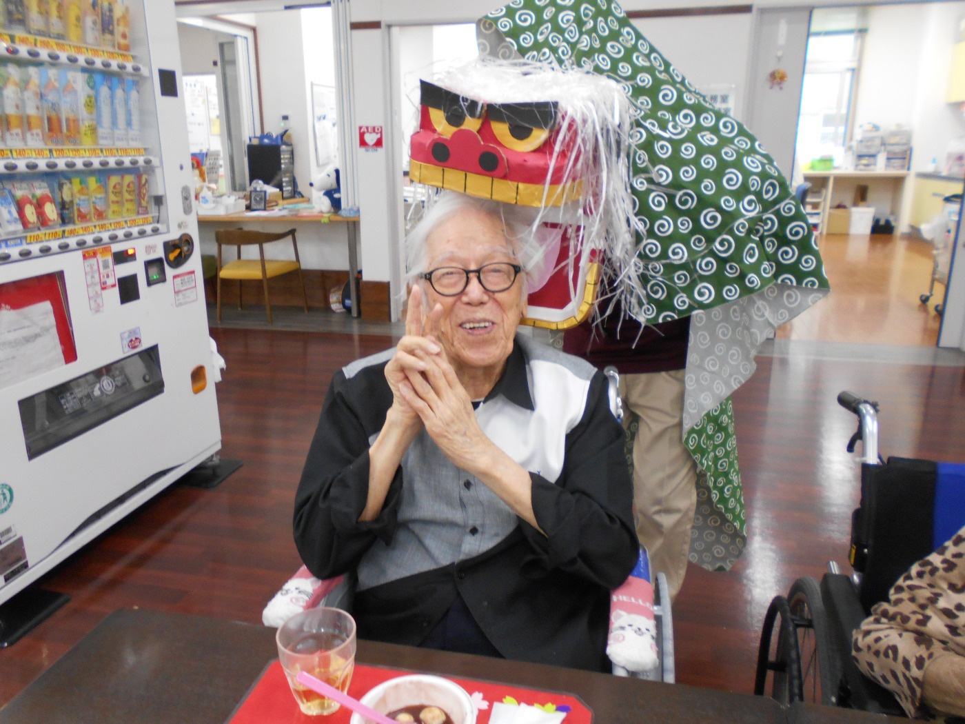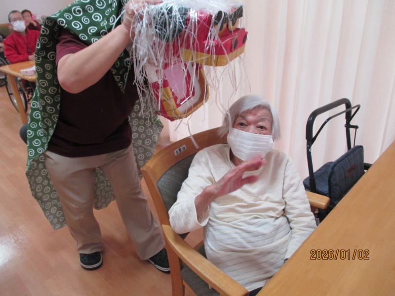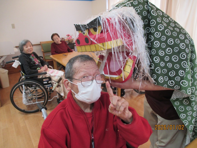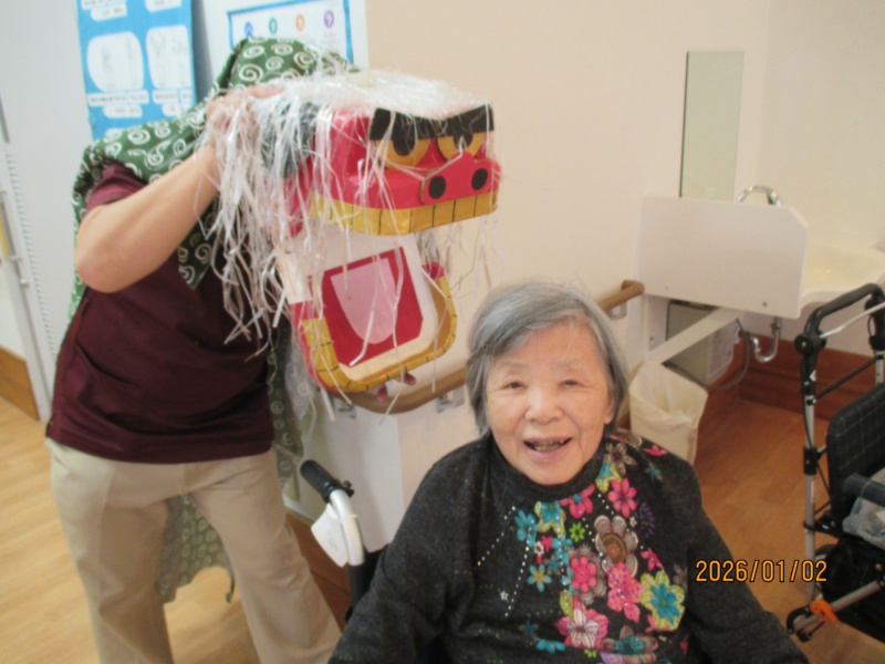 新年あけて入居者のみなさまが健康の願いを込めて獅子舞を行いました。