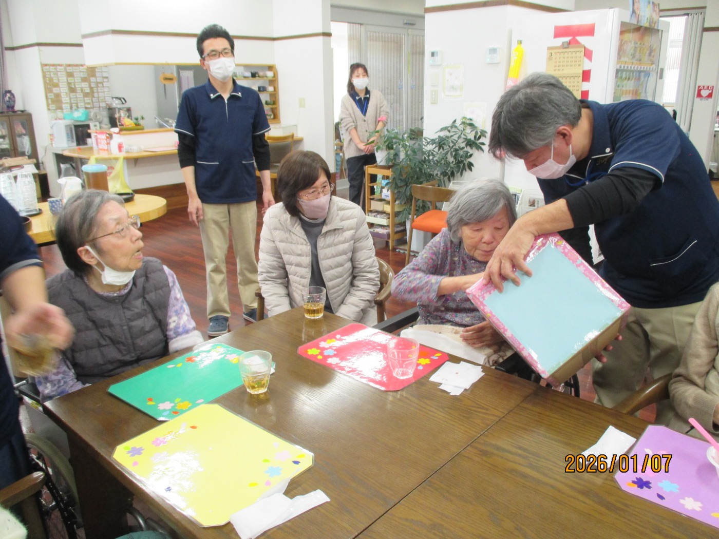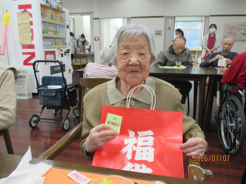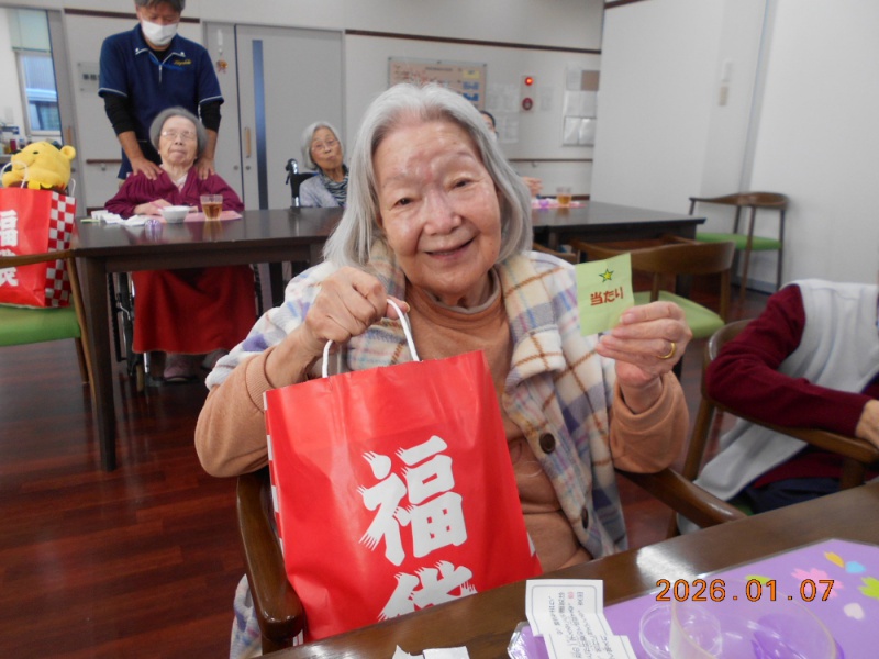 みなさん始まる前から楽しんでおり、新年会中も常に笑顔で「楽しかったー。来年も楽しみにしてる。次のイベント何かな?」と話されており、当たった方も「ありがとう。大切に使わしてもらいますね」と声掛けして頂いて、準備したこちらも嬉しくなった新年会になりました。