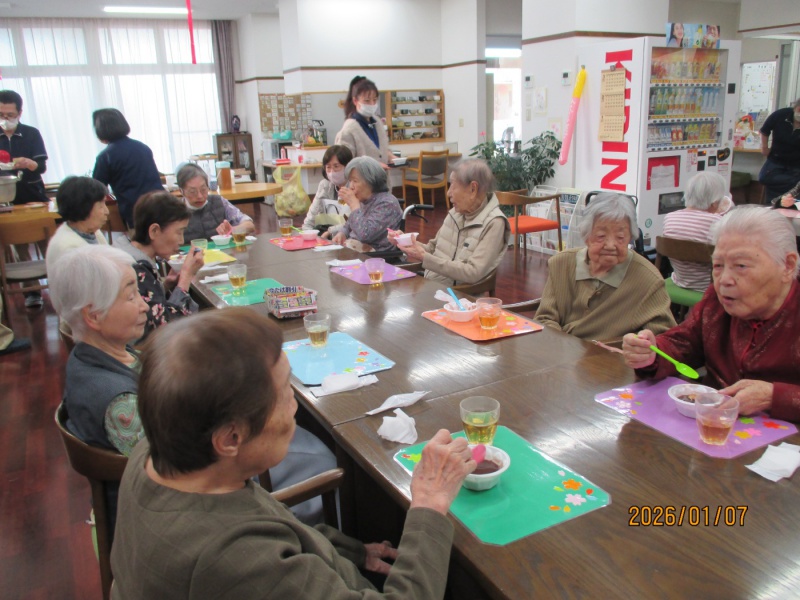 1階喫茶コーナーにて新年会を行いました。おしるこ、お茶を召し上がりました。