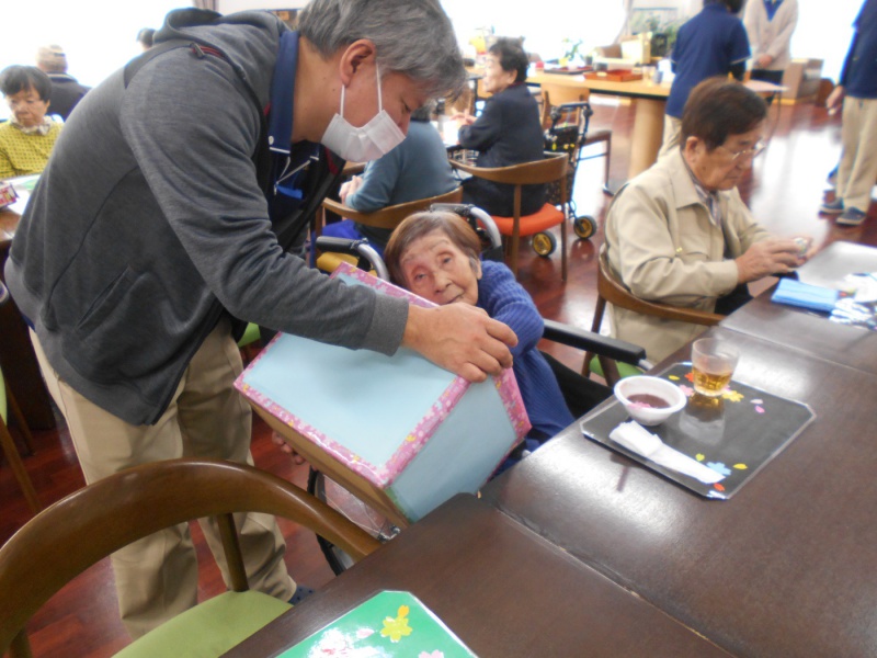 1階に移動する前からみなさん楽しみにされている様子で「お昼からおいしいものが食べれると聞いてお腹を空かしておかないとね」と話されたり、「お楽しみイベント楽しみにしてるね」と話されていました。