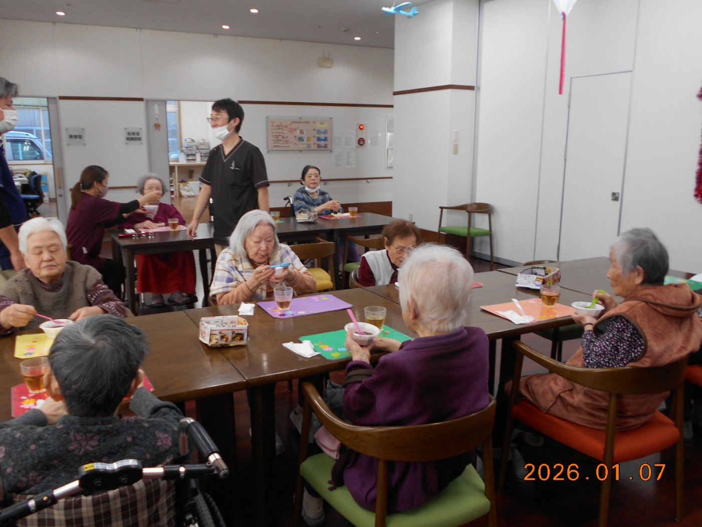みなさん、新年会を楽しまれた様子で「今年はいい年になりそう」と話されたり、おしるこも残さず食べ「おいしかった」と満足されている様子で素敵な新年会になりました。