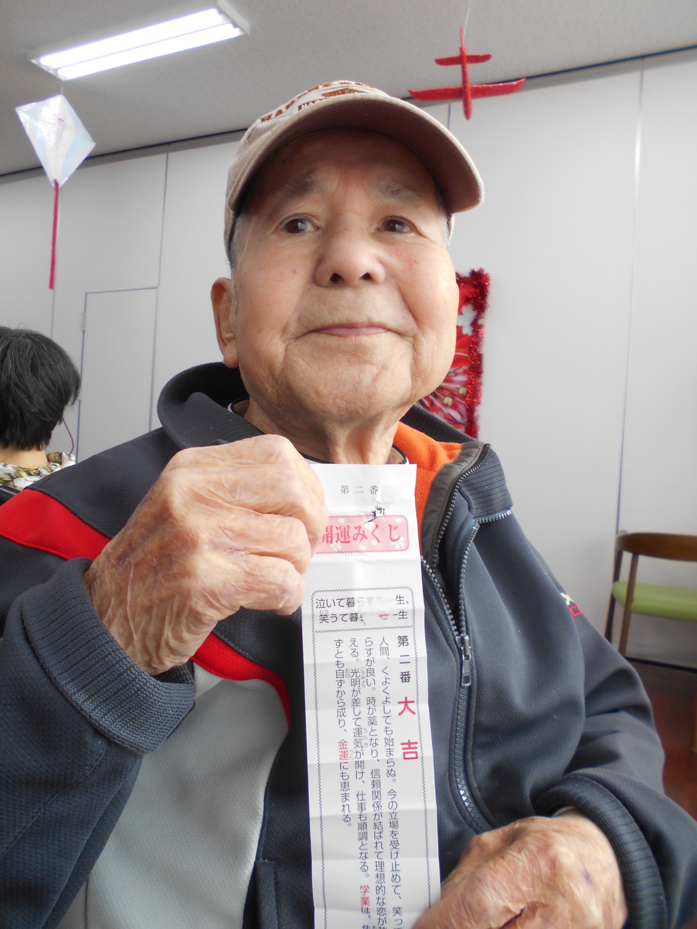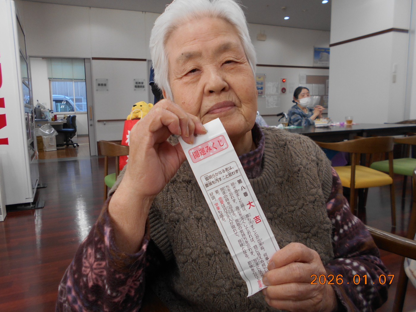 そして、次にくじやおみくじをみなさんで引きました。当たりと大当たりが1枚ずつ入っていました。