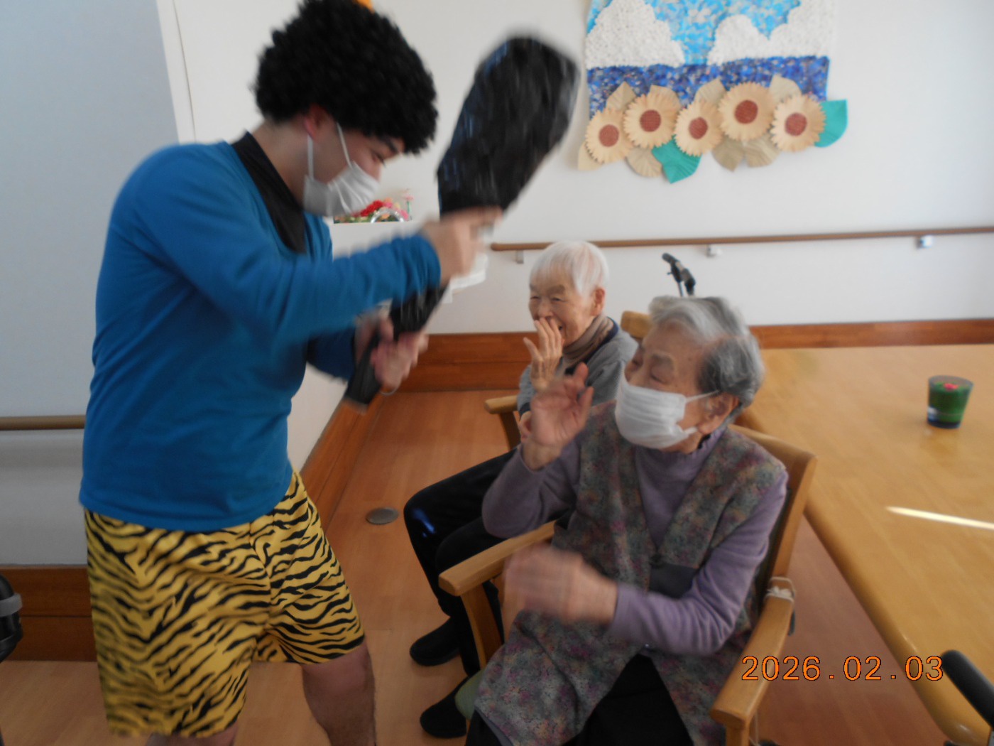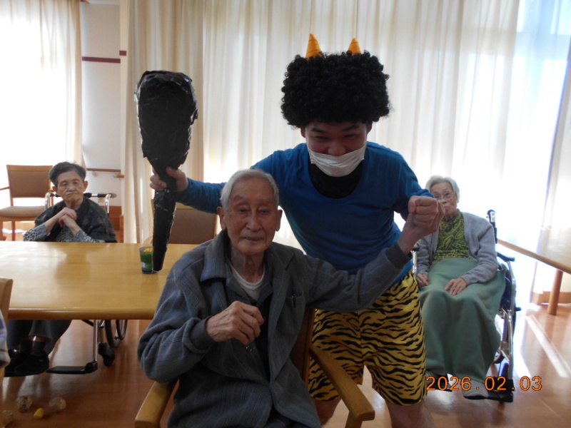 今年の節分も無事鬼を退治する事が出来て、素敵な一年になりそうです。みなさん「おつかれさま。楽しかったー!またやってね」と声掛けをして下さって、節分行事は成功のまま幕を閉じた。