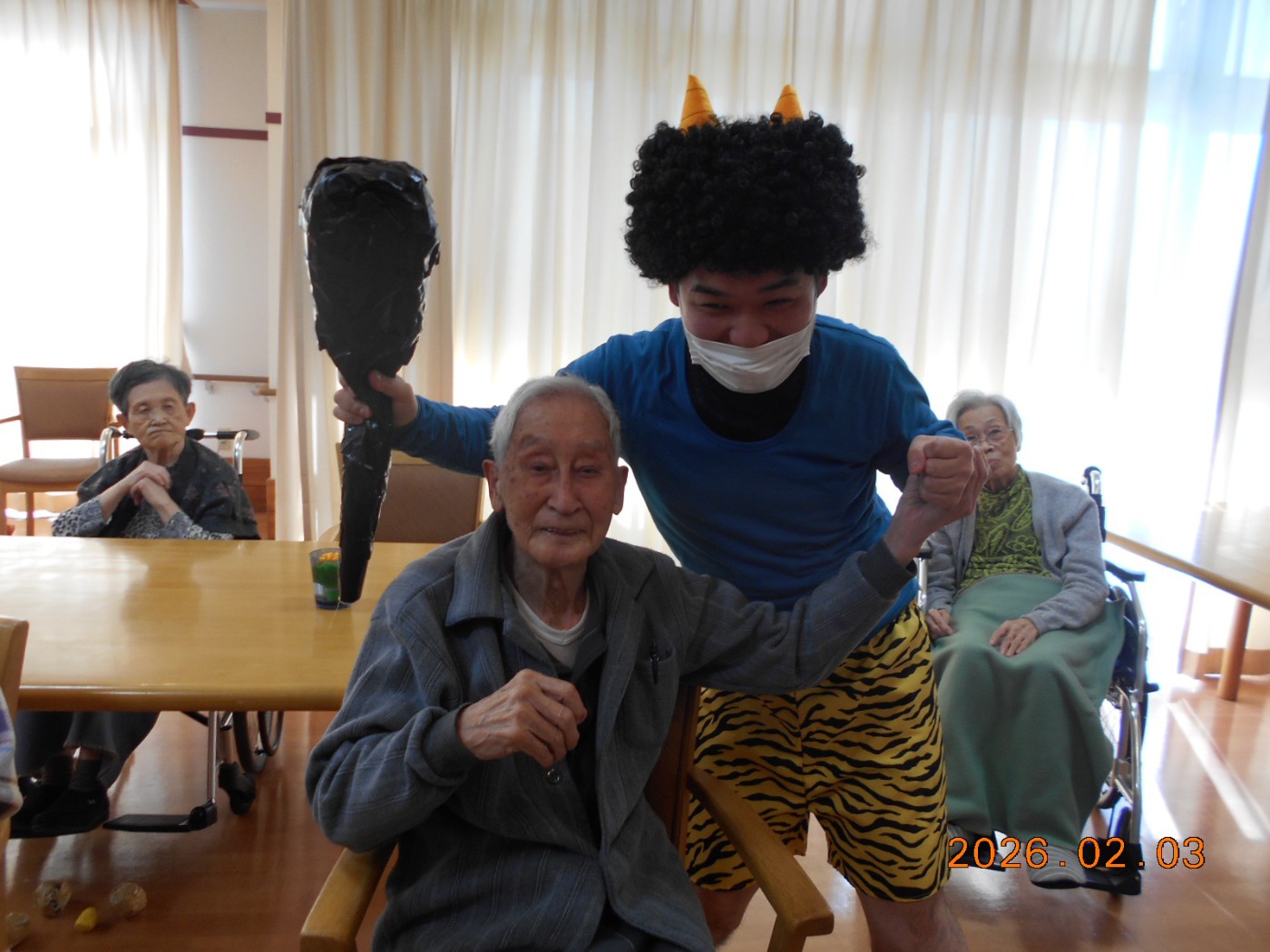 2月3日節分ということで今年も鬼がこちらの木場清里苑にやってきました。