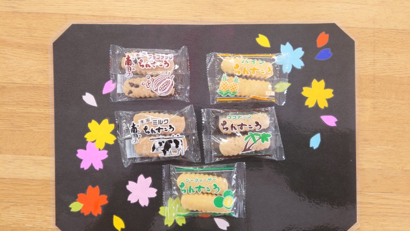 始まると、沖縄の映像や音楽が流れ、「懐かしい」と沖縄へ行ったことを思い出している方もいました。みなさん好きなジュースと箱の中からランダムにちんすこうを選び、「色違いだね」と隣の方と見せ合っている姿も見られました。