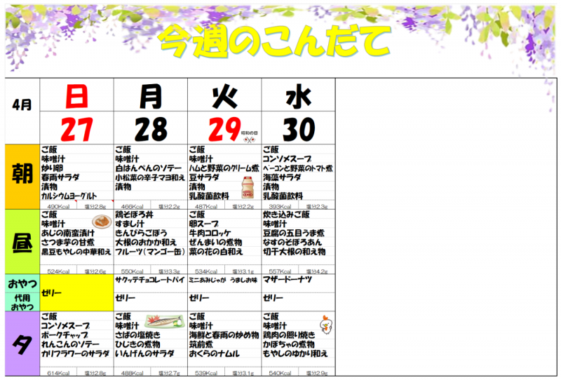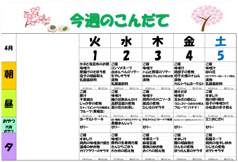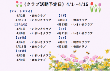4月の予定 木場清里苑