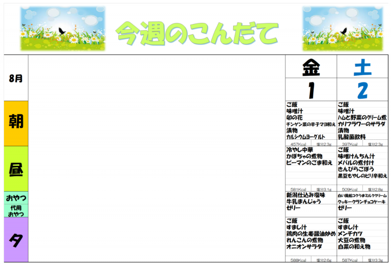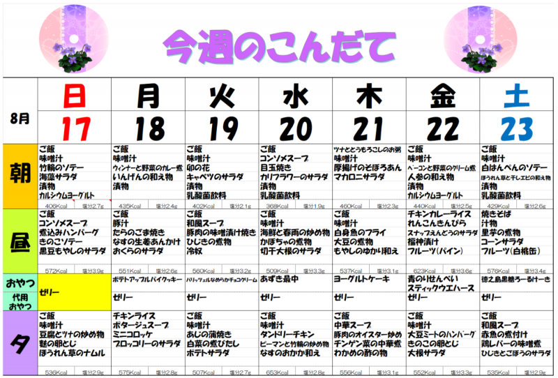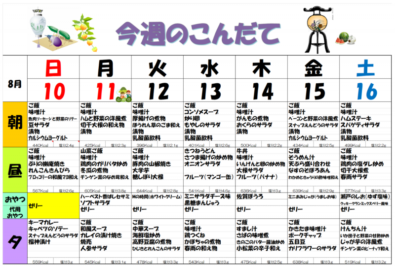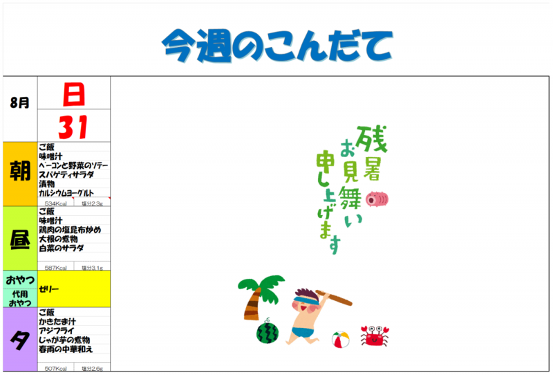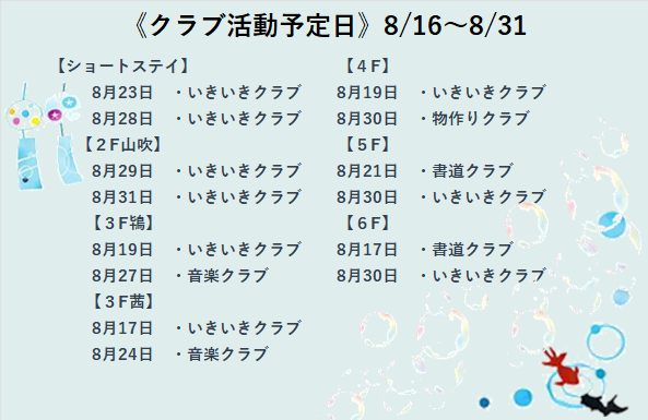 8月の予定 木場清里苑
