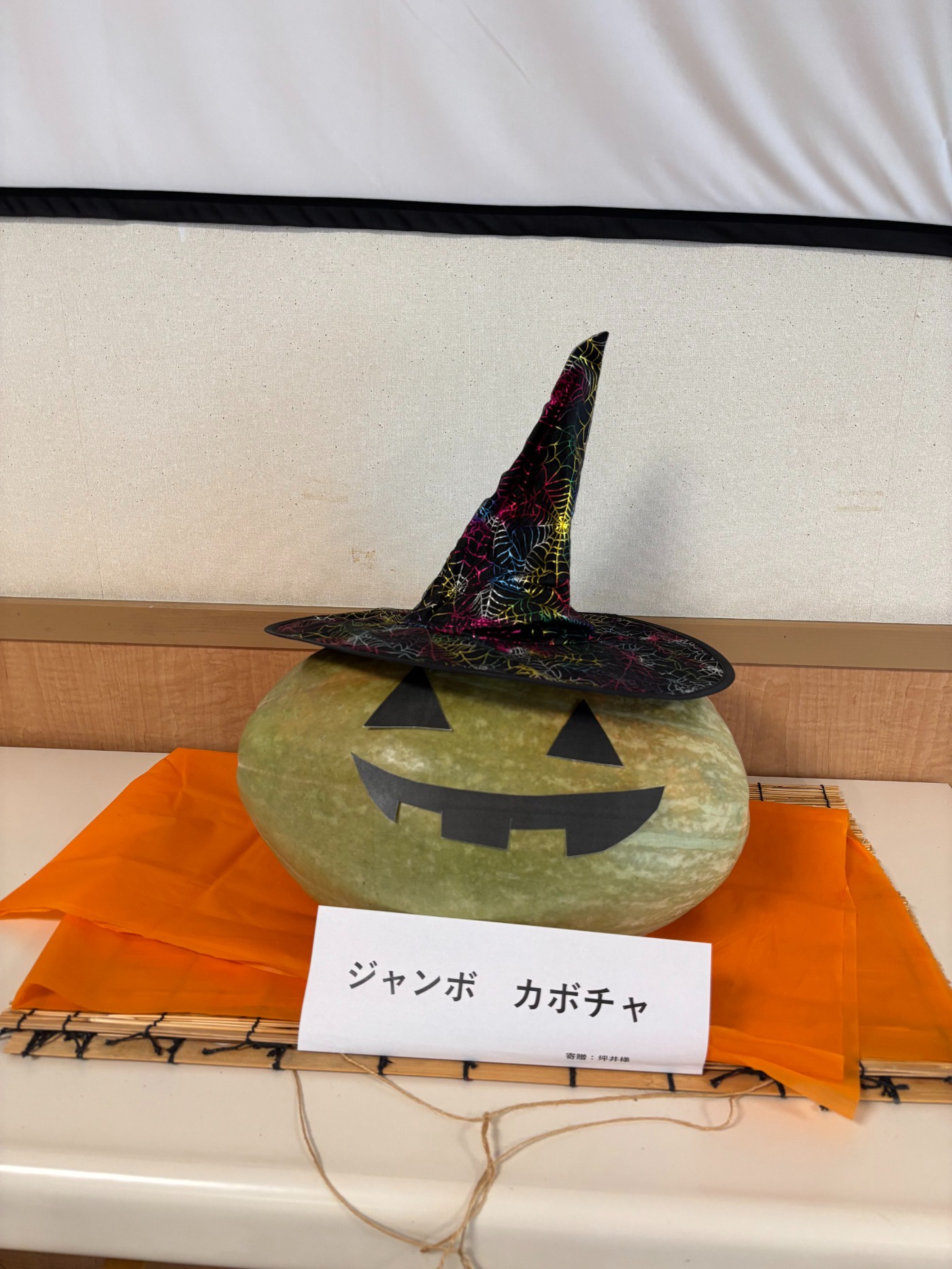 ハロウィンのかぼちゃ ご家族様が栽培された大きなカボチャを持ってきて下さいました。30㎝定規を超える大きさです。...
