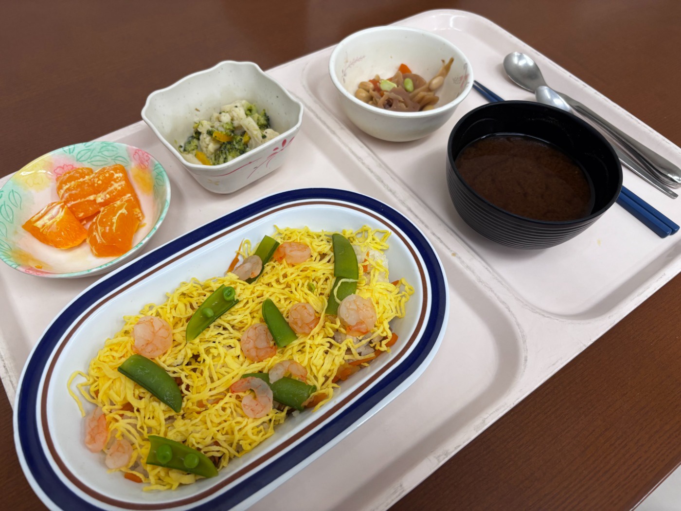 元日の昼食 元日の昼食メニューは、~お刺身、野菜の炊き合わせ、おせち盛り合わせ、赤飯風小豆ご飯、お味噌汁~でし...
