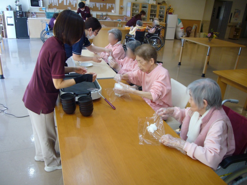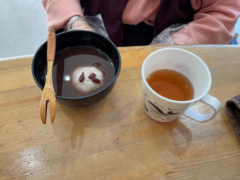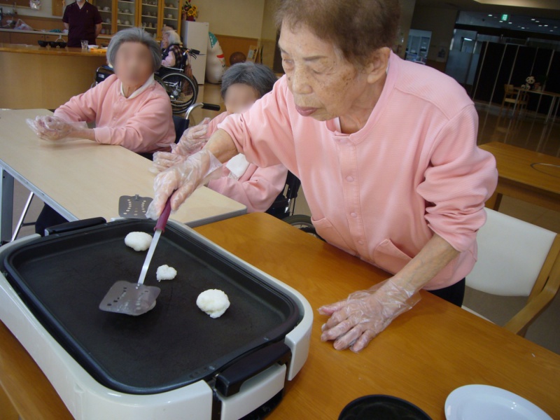 ホットプレートでこんがりと焼き目が付くまで焼いたら、あっという間にぜんざいの出来上がりです。 作業工程は多くないので、皆さん隣の方とお話ししながら楽しく参加されていました。