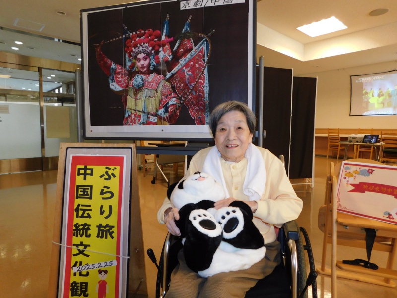 「中国といえば」の、パンダのぬいぐるみを持って記念撮影をしました。