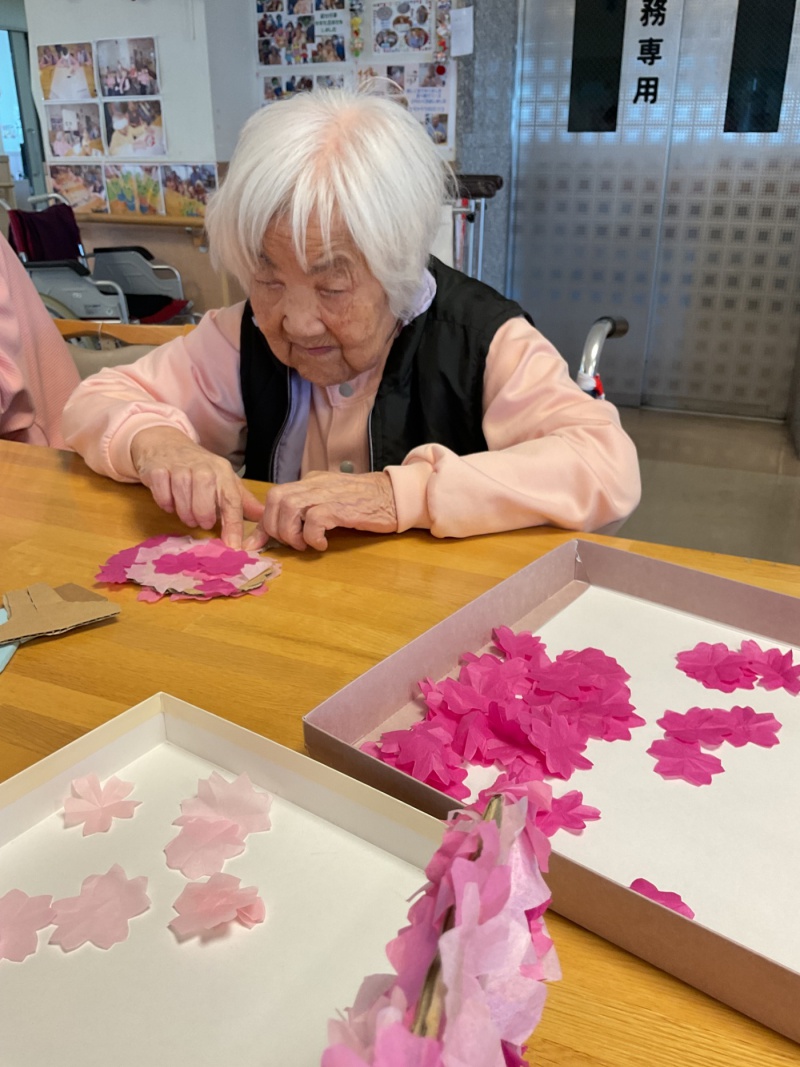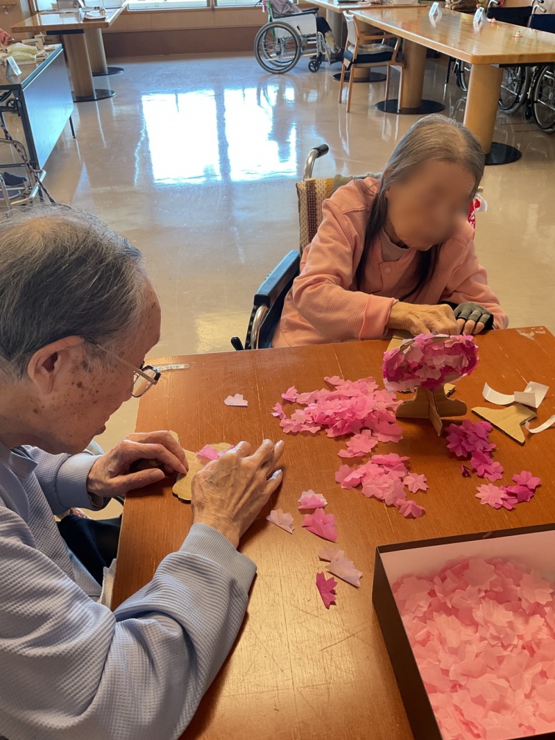 皆さんそれぞれの素敵な桜の木が完成しました。自立するので飾りやすく、皆さんご自分の席やお部屋に飾られていました。