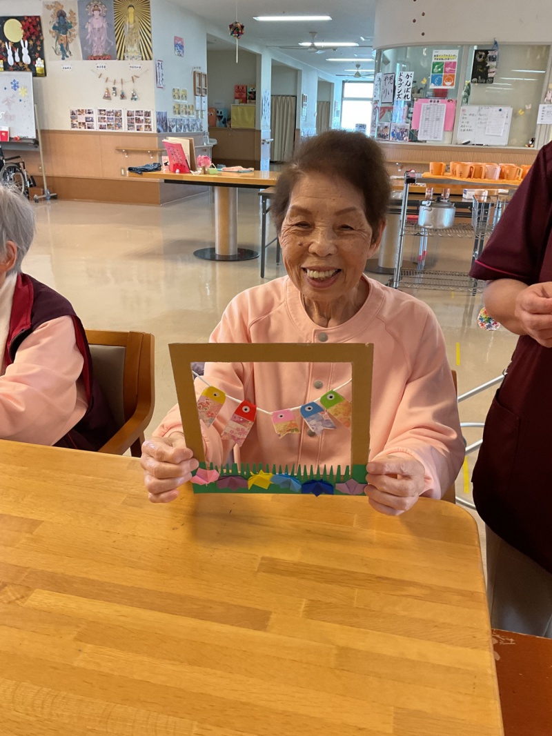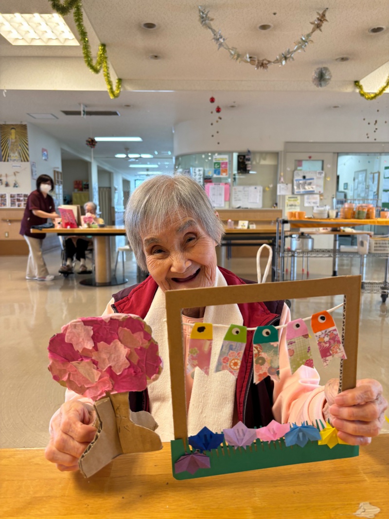 ダンボールで額縁を作ったので絵画の様な仕上がりになり、「可愛く出来た~」と喜ばれていました。
