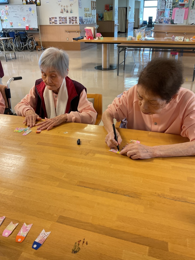 今月はこどもの日に因んだ物を作りましたよ。 まずは小さな鯉のぼりに目を描いていきます。