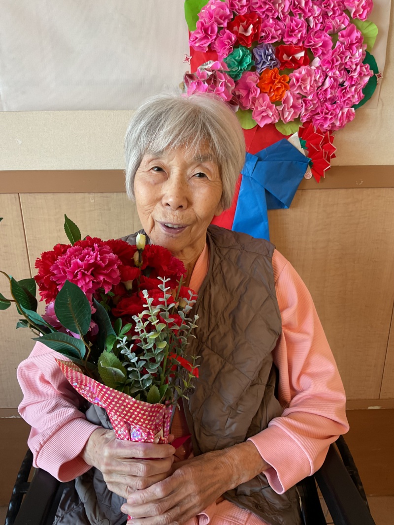ささやかですが、母の日に各フロアで皆さんのお写真を撮らせていただきました。 お花や構図などフロア毎の特徴がありますが、皆さん素敵な笑顔を見せてくださっていました。