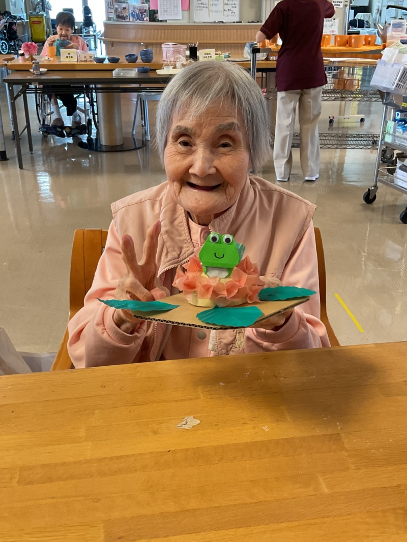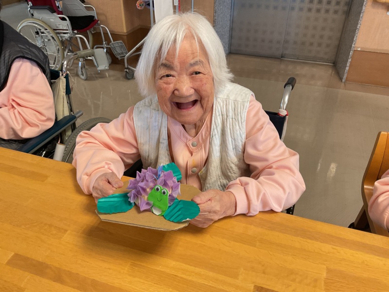カエルやカタツムリも飾り、皆さん素敵な紫陽花が出来上がりました!