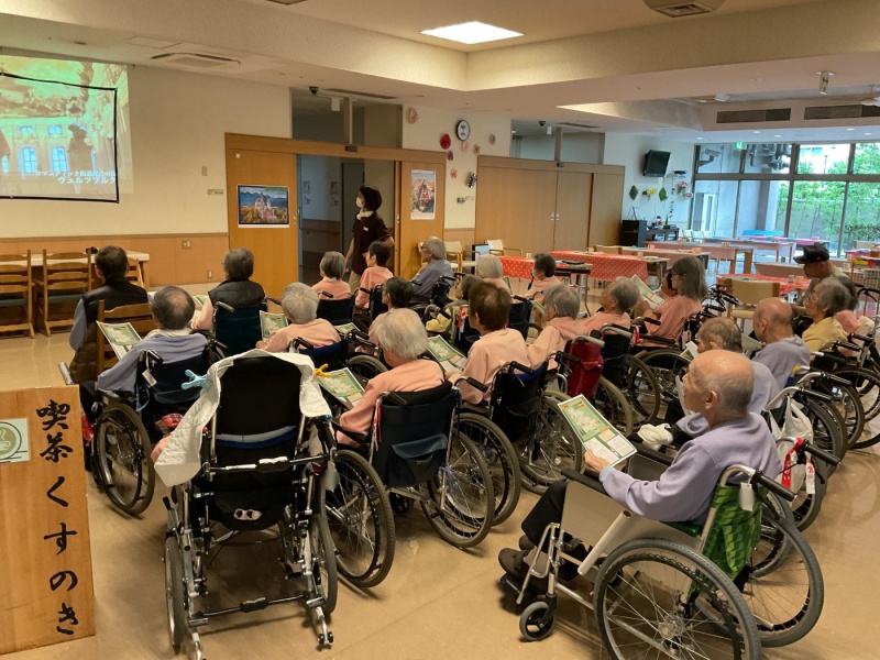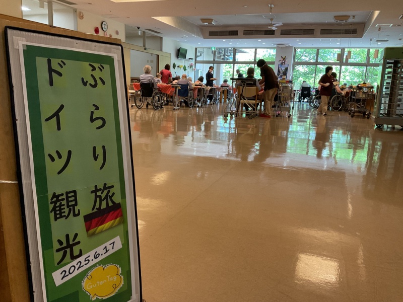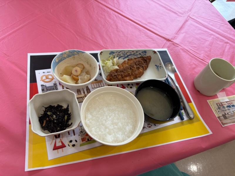 お料理は、ドイツ料理の定番のジャーマンポテト、あとは白身魚のフライ、ひじきのサラダ、ご飯、味噌汁、お漬物でした。 不思議な和洋折衷のメニューでしたが、皆さんには好評をいただきました。 来月はどこにいくのでしょうか?また楽しみになさってくださいね。