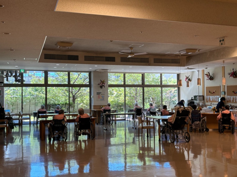今日は昨日までの雨とは打って変わって青空が広がる中庭を見ながら、皆さん喫茶を楽しまれていました。