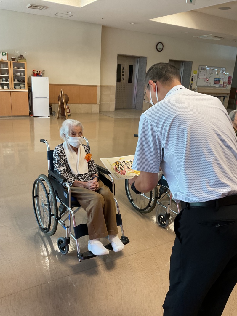 敬老の日には、白寿と米寿を迎えられる方のお祝いをさせていただきました。
