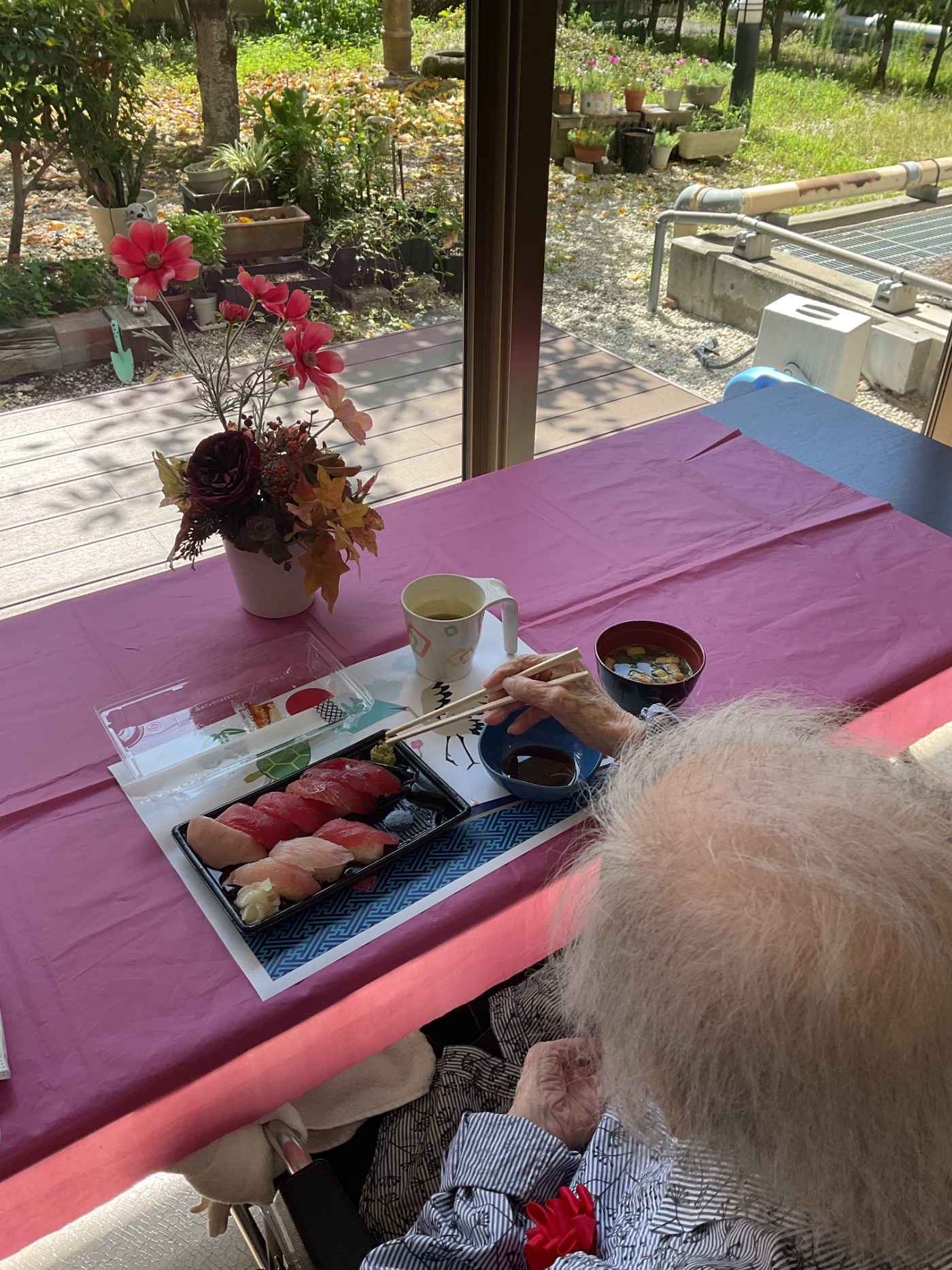 敬老会に参加していただいた方には、ささやかではありますがマグロの握りをお出ししました。